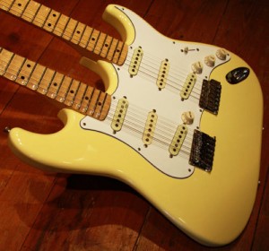 A következőn Yngwie Malmsteen 1996-os verziója látható – figyeljétek meg a kétnyakú (12 és 6 húros) Fender Japan Custom Shop által készített Stratocastert a kagylósított (scalloped) fogólappal, ami kifejezetten Malmsteen igényei szerint készült, ez ún. signature modell, 1993/94-ben mindössze 200 darabot gyártottak belőle és talán az egyedül 12 húros gitár kagylósított fogólappal!